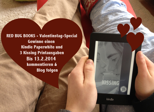 Okay, am Valentinstag MUSS man einfach etwas verschenken. Für uns – ganz klar – an unsere heiß geliebten Blogger/Leser. Da haben wir natürlich ein wenig herumgegrübelt, da wir mittlerweile mit einem Bein im Print-Buchgeschäft stehen und mit dem anderen äh, in der digitalen Welt hängen. Wobei – dann war es auch ganz schnell klar, dass wir Buch- und eBook-Fans beschenken wollen und zwar mit einem Kindle Paperwhite und 3 Printbüchern von Kissing. Und wie könnt ihr beschenkt werden? Ihr habt zwei Möglichkeiten: Ihr könnt hier auf dem Blog oder auf Facebook teilnehmen. Auf Facebook bitte liken und teilen, denn diesmal wollen wir es weit verbreiten und wenn ihr hier auf dem Blog teilnehmt, dann kommentieren und unserem Blog folgen (da gibt es ein winziges Pluszeichen von Bloglovin, da macht ihr einfach *klick*). Teilnehmen könnt ihr bis 13.2.2014, gelost wird am 14.2.2014 und am gleiche Tag ein Los-Video veröffentlicht. Also – nichts wie hinein in unsere große, gläserne Losschüssel!